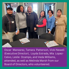 Oscar Manzarez, Tamara Patterson, Vicki Newell (Executive Director), Loyda Estrada, Mia Lopez-Calvo, Leslie Ocampo, and Veda Williams, attended, as well as Melinda Marsh from our Board of Directors, who volunteered.
